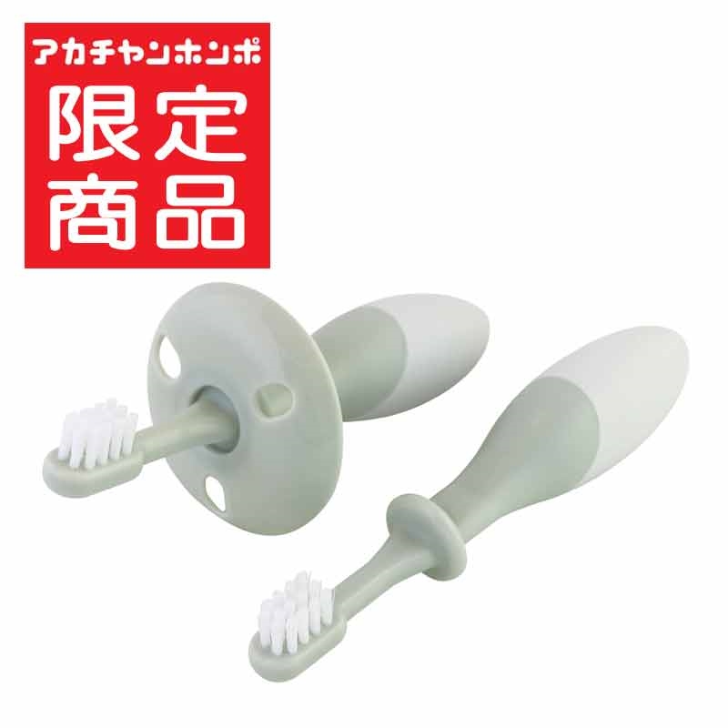 ソフトな毛で乳歯と歯ぐきにやさしい。 手のひらにしっかりフィットし、ぎゅっと握りやすいグリップ。 のど突きを防ぐガード付。