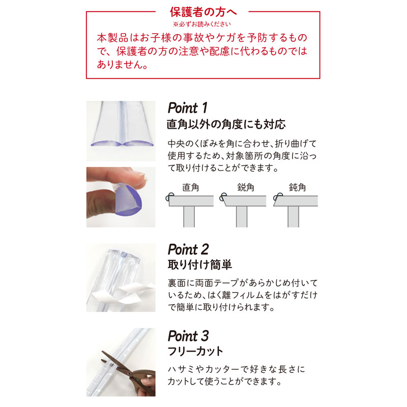 ・透明素材の為対象物の風合いを損なわず目立ちません。 ・厚み4ミリタイプなのでストレートだけではなく湾曲面にも貼り付け可能となります。 ・透明テープは貼り付け済み。 ・ハサミやカッターで自由にサイズ調整が可能です。