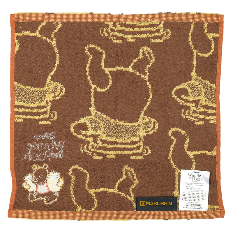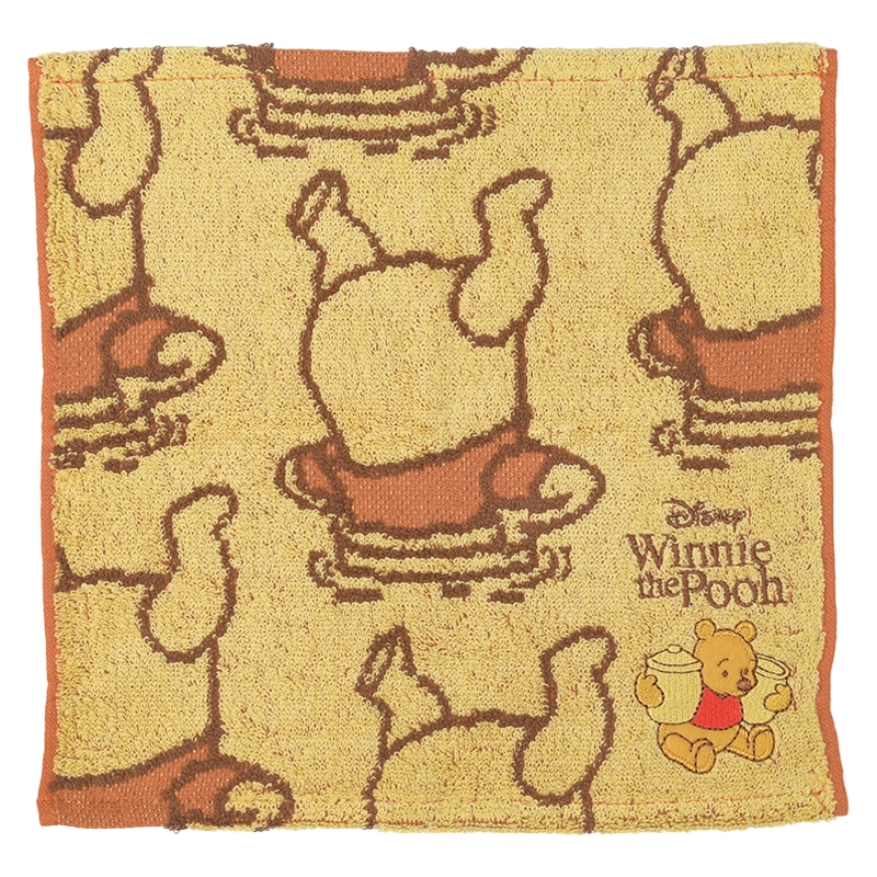 プーさんの頭がハチミツの壺に入ったユニークなシーンが描かれた可愛いミニタオルです。 右下のハチミツを持ったプーさんデザインのアップリケが特徴です。 普段使いにも便利なミニタオルのサイズ感はポケットやバッグにも収納しやすく、持ち歩きにもおすすめのタオルです。