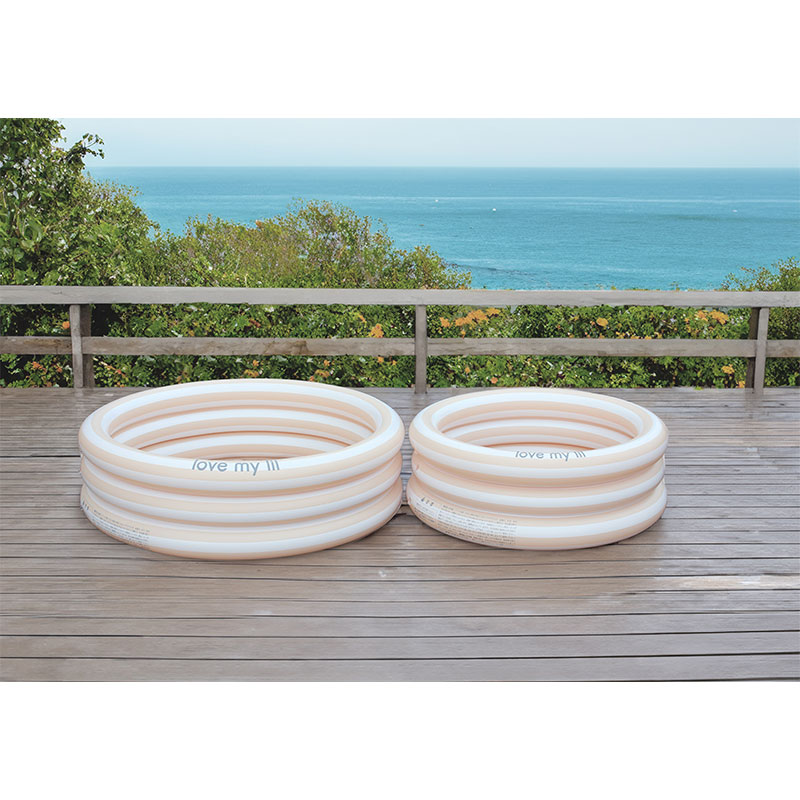 ラブマイリルからシンプルなストライプデザインのラウンドプールが登場。 底面はクッション入りでやわらか。 水抜き栓付きで排水もラクラク。 空気栓は各3層に配置。 お家のお庭やベランダで夏のプールタイムを楽しんでください。
