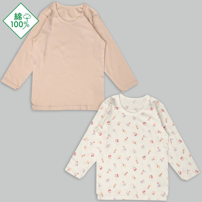 コットン100%素材で肌ざわり柔らか。 伸縮性、吸水性に優れたフライス素材です。 汗をかいても乾きやすい吸水速乾素材で、さらりと快適に過ごせます。 脇から袖下の縫い代は外縫い仕様で、洗濯ネームも外側に付いており 肌に直接あたりにくく安心して着ることができます。 洗濯ネームにはお名前欄があり、保育園でのお着替えなどにも便利です。 洗い替えに便利な2枚組。