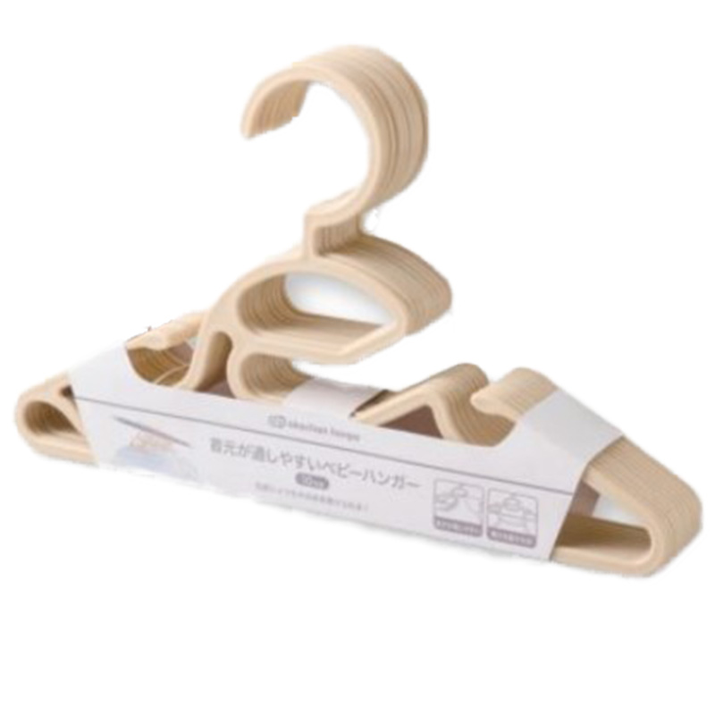 ●子供の衣類にピッタリなベビーハンガーを気軽に試せる10本セット ●薄型で収納時も邪魔になりにくい ●干す際に、丸首シャツも引っ張ったり、 下からハンガーをくぐらせたりせず、簡単に首元から通せる形状を採用 ●肩ひものある洋服も掛けやすい ●タオルやハンカチを掛けやすいストッパー付き