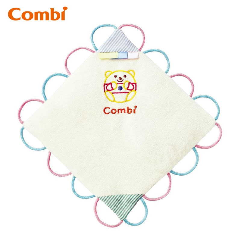赤ちゃんが大好きなヒモがたくさんついています。 赤ちゃんが自分でつかみやすい布製のおもちゃ。 やわらかいハンカチ形状で握りしめると大好きなカサカサ音も楽しめます。