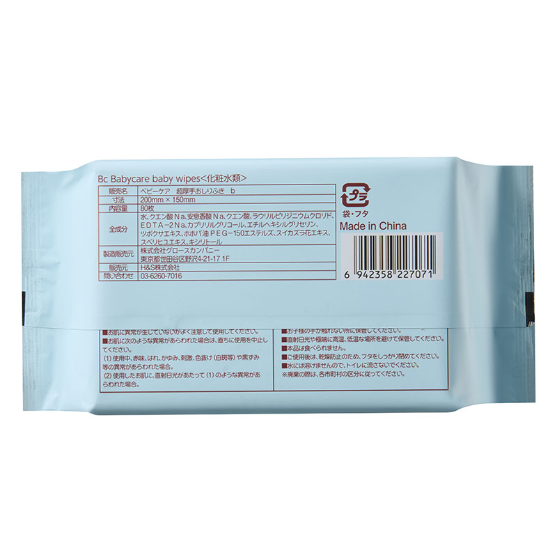デリケートな赤ちゃんのお肌を守る。超厚手・水分たっぷりの赤ちゃんのおしりふき・手口ふき 厚さ、大きさ、水分量、シートの形状。発売以来改良しつづけ、すべての面において高レベルで完成した Bc Babycareの自信作が超厚手・水分たっぷりの赤ちゃんのおしりふき・手口ふきです。 これまでに全世界で累計36憶枚が販売された大人気商品です。 1枚でもきれいにできてママ・パパの手も汚れににくい。 こだわりのパッケージで乾きにくく衛生的 洗い流すようにふけてデリケートな肌にもやさしい お口まわり・体にも使えて便利。 ●お肌に異常が生じていないか、よく注意して流さご使用ください。使用中、又は使用したお肌に直射日光があたって、赤み・はれ・かゆみ・刺激・色抜け(白斑等)や黒ずみ等の異常が現れた場合は、使用を中止し、皮フ科専門医などへご相談ください。そのまま使用を続けますと症状が悪化することがあります。 ●眼や粘膜および傷口には使用しないでください。 ●中身の乾燥を防ぐため、使用後はしっかりとシールを閉め、なるべく早めにご使用ください。 ●乳幼児の手の届かないところに保管してください。 ●お子様に配慮した成分を使用しておりますが、使用に際しては、お子様の誤飲・誤食にご注意ください。 ●直射日光のあたる場所や、高温の場所には保管しないでください。 ●水に溶けませんので、トイレに流さないでください。 ※出荷時期により、パッケージデザイン・カラーが画像と異なる場合がございます。