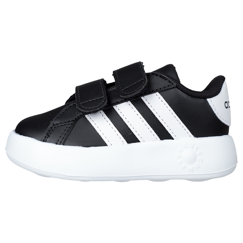 公園で遊ぶときや、親戚の家に行くときに履かせたい、小さな足を一日中快適に支えてくれるベビーシューズ。軽いシューズには面ファスナーストラップが付いているから、親が手伝うときはもちろん、小さな子どもが自分で脱ぎ履きするのも簡単。ミッドソールとアウトソールを組み合わせたワンピース構造のEVAバブルソールが、一歩一歩にクッション性を提供する。また、耐久性とデザイン性を両立させた、リサイクル素材から生まれた合成アッパーを組み合わせている。この製品には、リサイクル素材を20%以上使用。製造された製品の素材をリユースすることで、ゴミの量、限りある資源への依存、そしてアディダス製品のフットプリントを減らすことにつながる。