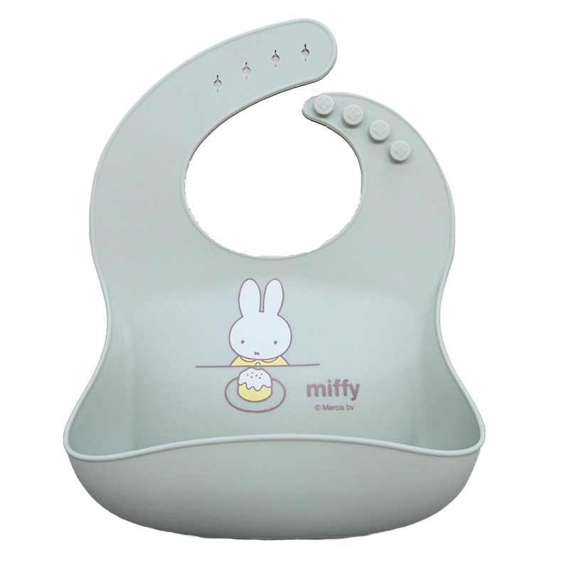 ミッフィーのシリコンエプロンが登場。 立体的なポケットが食べこぼしをしっかりキャッチ。 簡単に水洗い、拭き取り可能な扱いやすいシリコン素材のエプロンです。 ソフトな素材なので付け心地も良く、小さく丸めて持ち運びも出来ます。 首回りは4段階に調節可能。 (C)Mercis bv