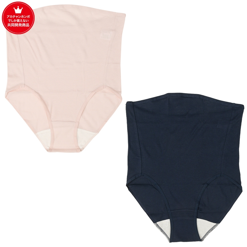●素材=身生地:綿 100% テープ部:ナイロン 83%・ポリウレタン17% ●サイズ(約・cm)=マタニティM~L(腹囲 78~110、ヒップ 85~103)・マタニティL~LL(腹囲 88~120、ヒップ 90~108)