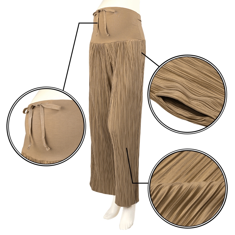 自分の好みに合わせて、裾がセルフカット出来る、プリーツパンツとなります。 裾から、10cmまでカットする事ができます。 お腹部分はベア天竺素材で、お腹をやさしく包み込みます。 お腹部分のスピンドルで、サイズ調節が可能です。