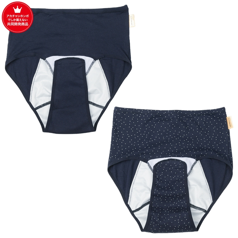 綿100%産じょくショーツ2枚組 ドット ネイビー