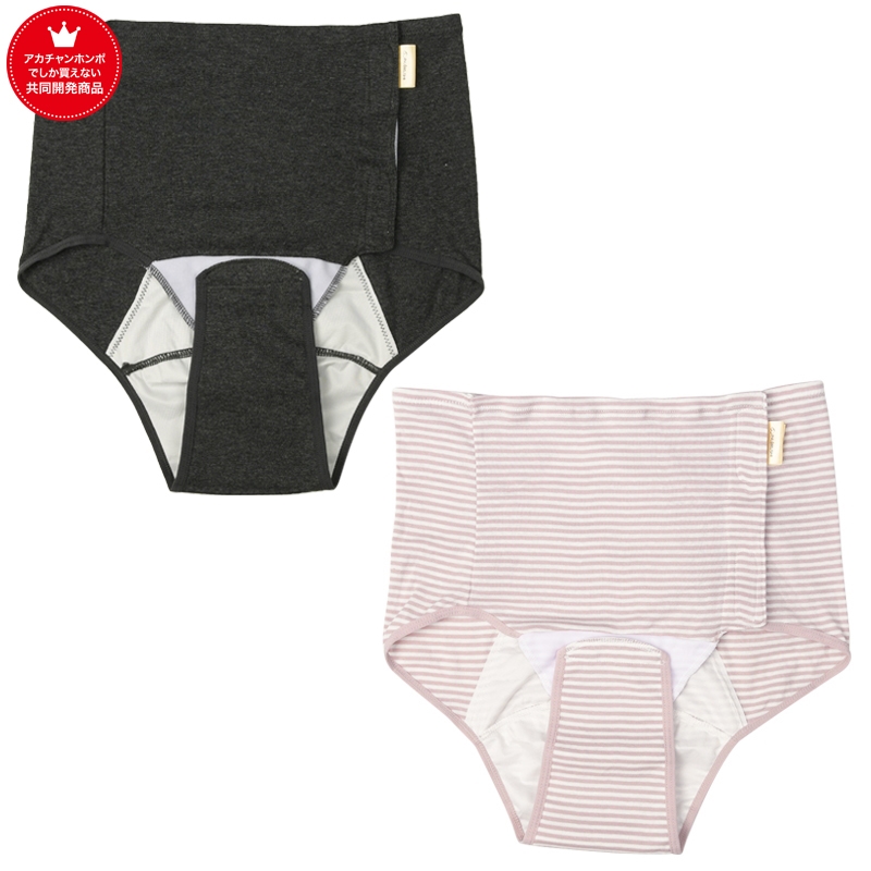 おなか部分は、ゴム不使用で術後のおなかを締め付けません。 産後すぐは、まだ、おなかもふっくら。ゆったり産後サイズです。 防水布は幅広仕様で、後もれをガード。 おなか部分も開閉できるので、術後の手当ての時も便利です。