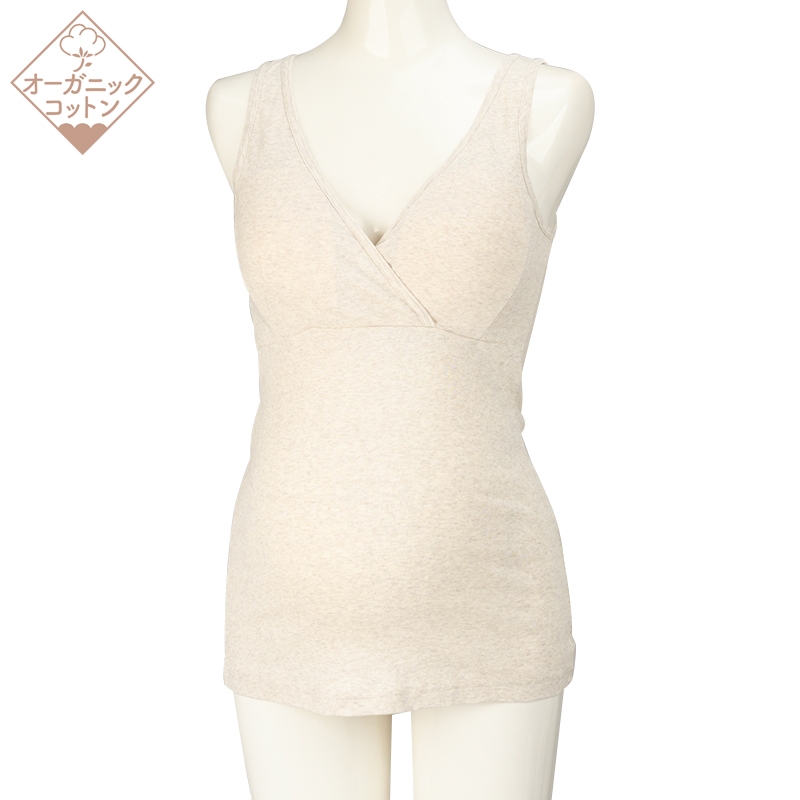 やわらか素材のオーガニックコットン100%のタンクトップ。 アンダーゴムは前側のみで、やわらかゴムを使用しているのでしめつけ感が少なくバストを優しく支えてくれます。 クロスオープンタイプで授乳もラクラク。 パッドは穴あきタイプでムレにくく、取り外し可能です。 洗濯ネームはプリントで肌にやさしい仕様です。 ※オーガニックコットンとは、農薬や化学肥料を3年以上使わない農地で栽培された人と環境にやさしい有機栽培綿です。 ※ベージュ・チャコールグレー・グリーンは草木染(天然ハーブでやさしく染めています) ※商品によって多少の色差が生じる場合があります。その時々の自然の風合いをお楽しみください。