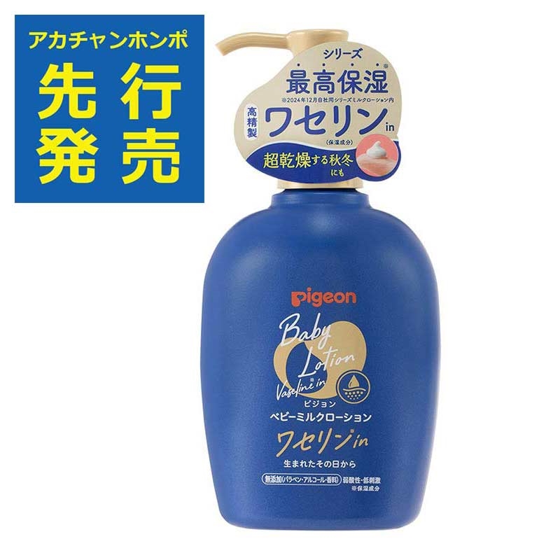 特に乾燥する秋冬におすすめ。 ピジョン ベーシックスキンケアシリーズから、 うるおい密封ケア ベビーミルクローション ワセリンin 登場しました。 シリーズ共通のうるおい成分 PNM に加え、うるおいを閉じ込める 高精製ワセリンを高配合。ワセリンの密封効果で、長時間うるおいを逃しません。 シリーズ最高保湿のコクのあるローションが全身になめらかに広がり、 手ごわい乾燥肌もこれ1本で集中保湿できます。 PNM:ピジョンナチュラルモイスチャー 保湿成分 ワセリン特有のべたつきを抑えた塗り心地 無添加・低刺激処方 250gのポンプタイプ