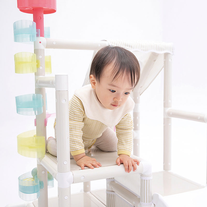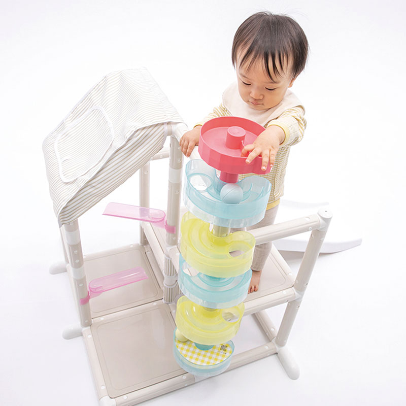 ●対象年齢:1~5歳未満 ●製品寸法(約・mm):W900×L1300×H940 ●分解収納時寸法(約・mm):W940×D500×H940 ●製品重量:8.5kg ●制限体重:20kg未満 ●材質:PP・ABS・ポリエステル ●付属品: ・ボール×3個 ・ころころプレート(お皿)×5個 ・ころころレール×3本 ・ころころスロープ×1個