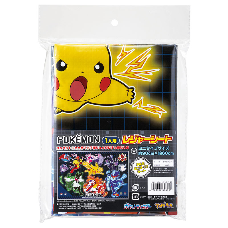 コンパクトにたためてお子様のリュックにすっぽり入るレジャーシートです。 1人用のミニタイプサイズです。 遠足や運動会、ピクニックや行楽などの持ち運びに便利なミニサイズシート。 スポーツ観戦など自分用のシートとしてお大人でもお使い頂けます。 (c)Nintendo・Creatures・GAME FREAK・TV Tokyo・ShoPro・JR Kikaku (c)Pokemon