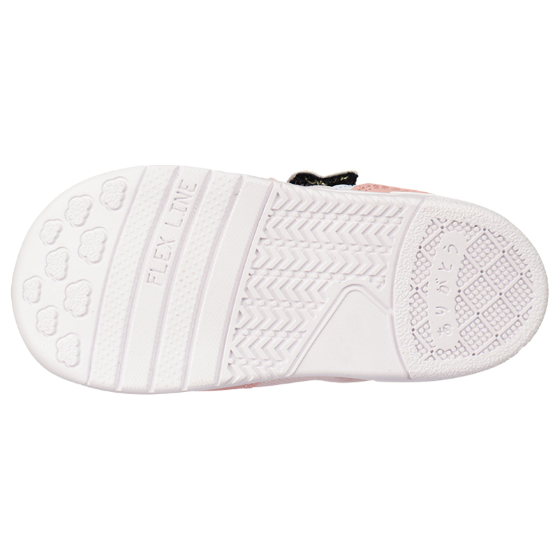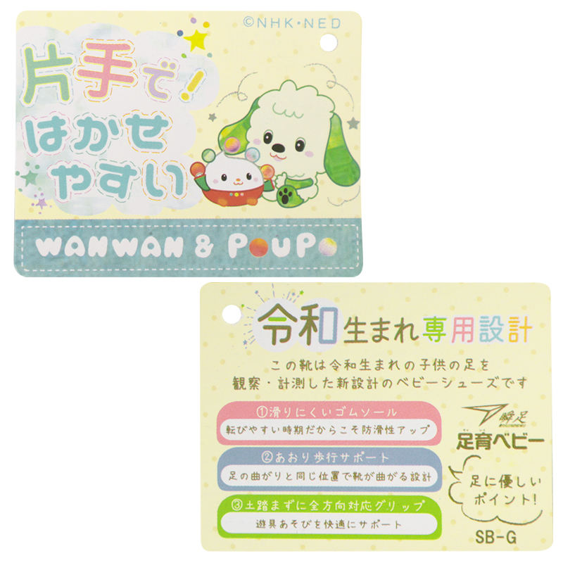 NHKの人気番組いないいないばあっのキャラクターが付いたベビーシューズです。 令和ベビーの足型に合わせたラスト設計。 独自のつま先形状で足指ひろびろ設計。 踵を絞って足抜け防止。 パカッと大きく開くバンド構造で履かせやすい。 星の形に合わせてバンドをつけるかたちあわせ、かかとのテープをつまんではく、足裏をしげきするインソールという3つの機能を搭載した脳トレシューズ。