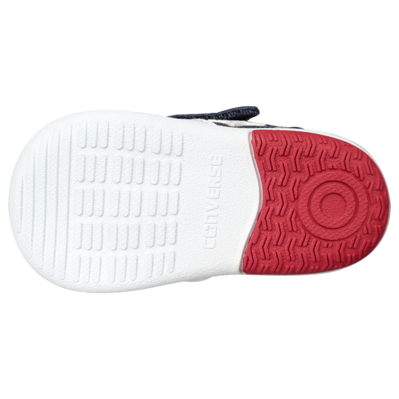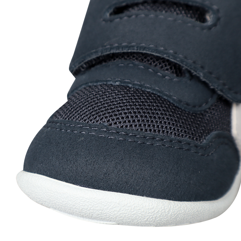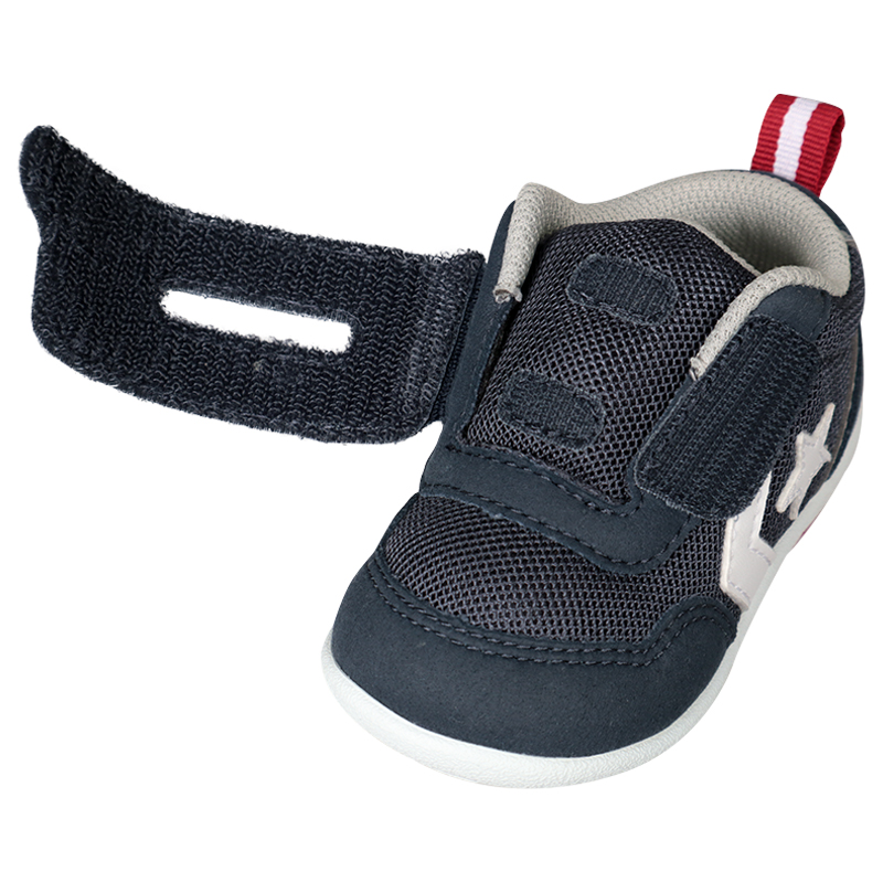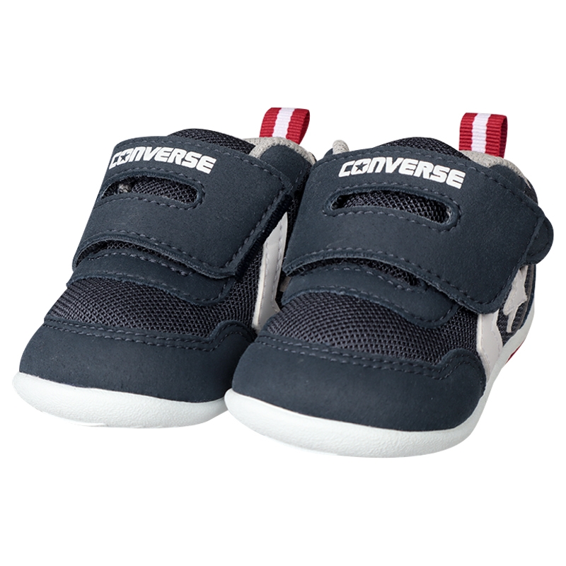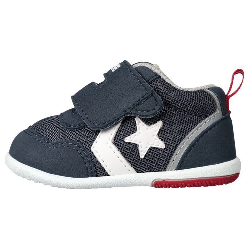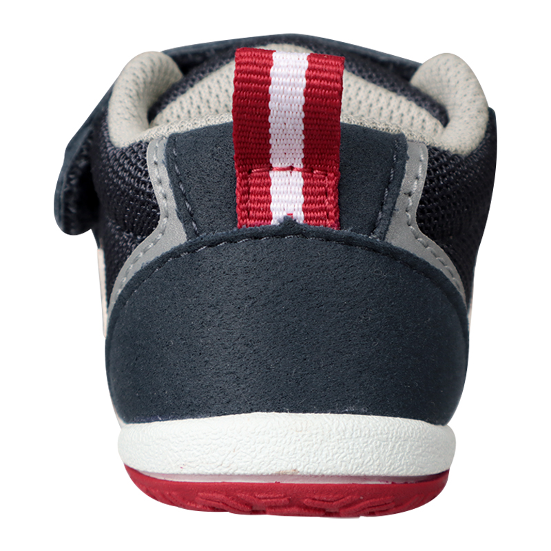 ・ベビーウェアと相性の良いレトロランニングカラーを落とし込んだ2カラー展開 ・カウンター部分にポイントでリフレクターを使用 ・アッパーとインナーには通気性の良いメッシュ素材を使用 ・歩き始めの赤ちゃんに対応した軽量で屈曲性の良いソール仕様 ・MIDカットモデルで不安定なベビーの足元をやさしくサポート ・ワンベルトタイプに踵ループ付きで履かせやすいデザイン