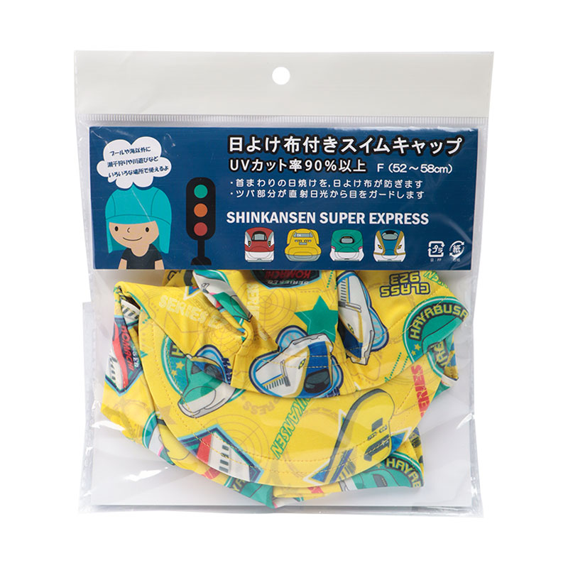 紫外線遮蔽率90%以上で海やプールで使えるツーウェイ素材のスイムキャップです。 首の後ろを保護する布付きなので、レジャーなどの外遊びにもおすすめです。