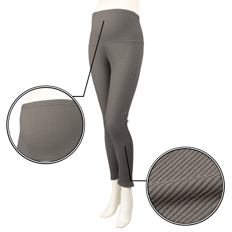 穿きやすいシルエットのレギンスパンツです。お腹がゆったりなのにすっきりかっこよく決まるパンツに仕上がっています。 おなか部分は伸縮性の良いカットソー素材を使用し、お腹周りを締め付けず心地よく穿けます。 おなか部分のカットソー素材を折り返して産後もはくことっができます。