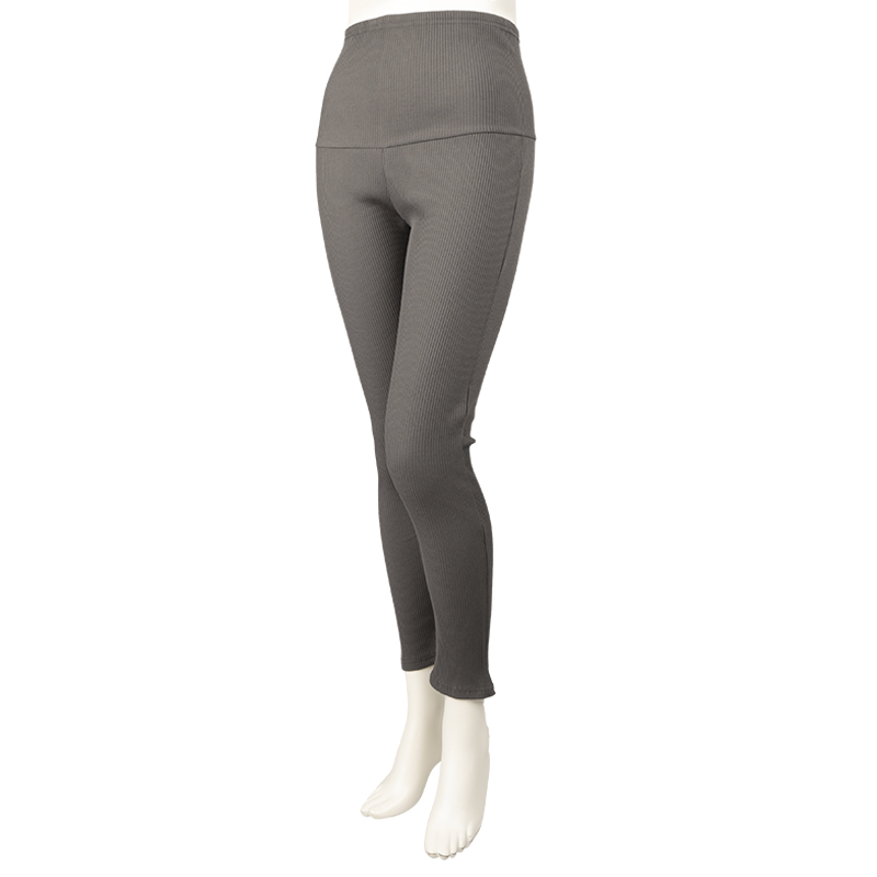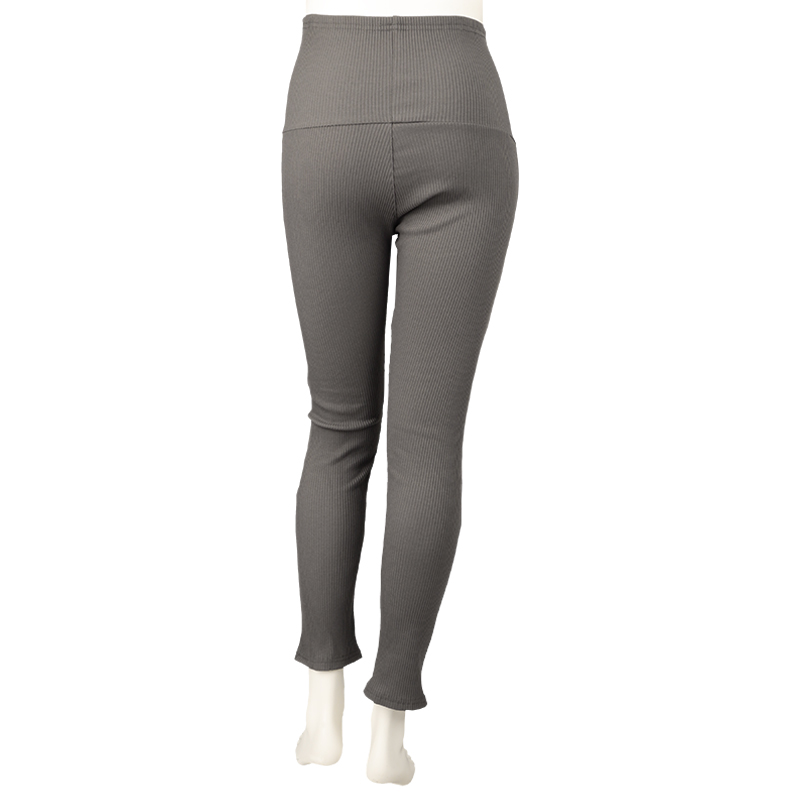 穿きやすいシルエットのレギンスパンツです。お腹がゆったりなのにすっきりかっこよく決まるパンツに仕上がっています。 おなか部分は伸縮性の良いカットソー素材を使用し、お腹周りを締め付けず心地よく穿けます。 おなか部分のカットソー素材を折り返して産後もはくことっができます。