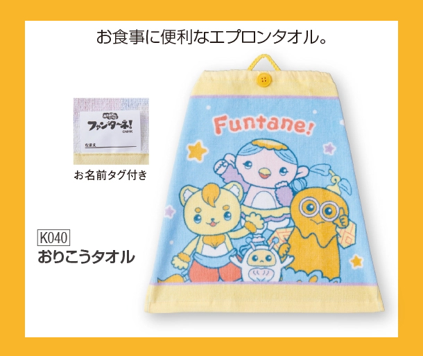 学校・幼稚園・保育園の様々なシーンで活躍するおりこうタオルです。 ボタンとゴムが付いているため、箸箱やコップなどをくるっと包むことができ、 お食事の際ではエプロン代わりとしてご使用頂けます。 タオル地なのでお口のよごれを拭く事も可能です。 普段使いにも、お出かけにもお使い頂ける仕様となっております。