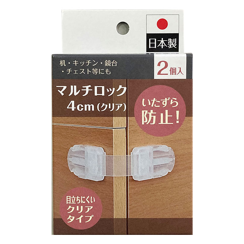 引き出し・開き戸・引き戸をロックしお子様のいたずらを防止します。 お部屋の雰囲気を損ないよう、目立ちにくいクリアタイプです。 取り付け方法は付属の粘着テープで簡単に取付できます。 はがし跡が残りにくい粘着テープを使用しています。