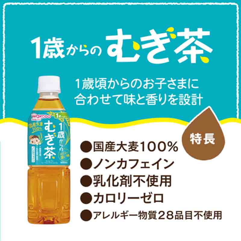 ・1歳からのお子さまがおいしく飲める、ほどよい濃さのむぎ茶です ・甘く香ばしい麦茶の味を楽しめる ・国産大麦100%使用 ・無菌パック製法なので乳化剤を使用しておりません ・ノンカフェイン ・カロリーゼロで日常の水分補給に適しています ・アレルギー物質(28品目)を含む原材料は使用しておりません