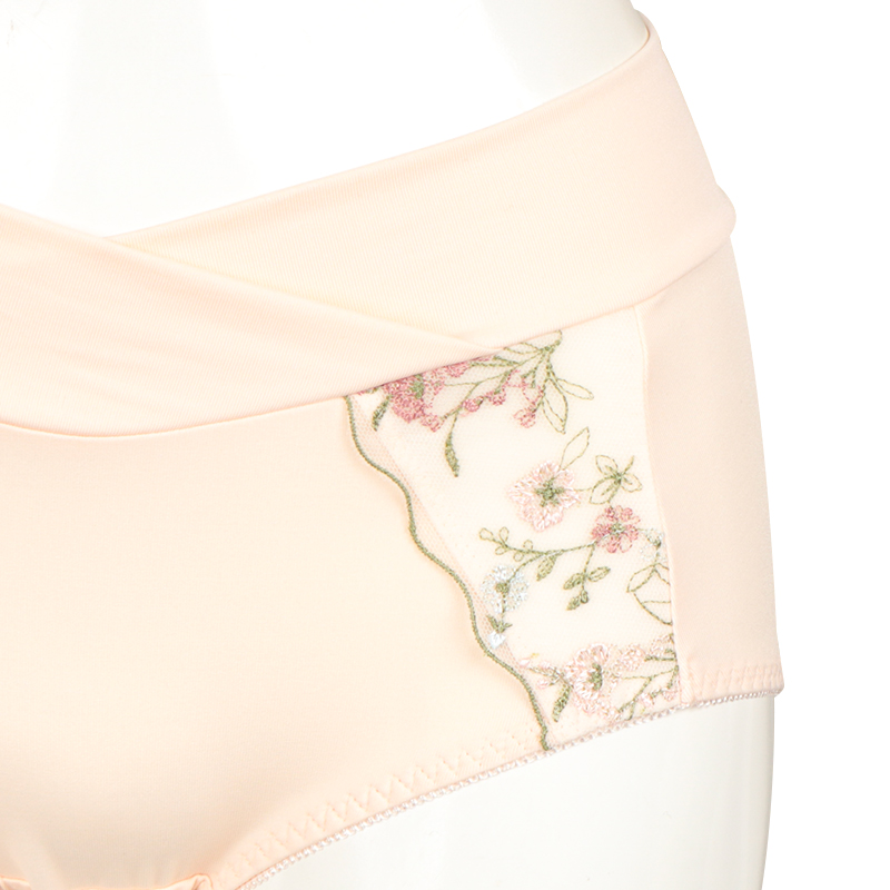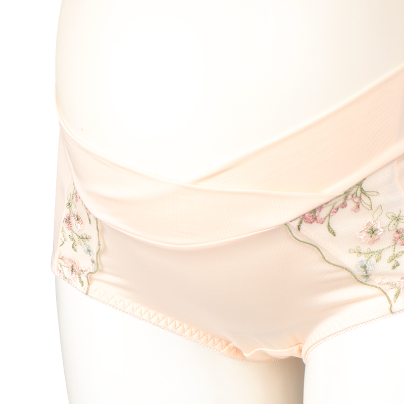 ウエスト部分をクロス仕様にすることでやさしくフィットし、大きくなるお腹にも対応できます。 産前から産後まで長くご使用頂けます。すべすべ素材で肌触りが気持ちいい。 マチ部分は、体調変化に気付けるように白地にしております。 洗濯ネームは肌当たりに配慮して転写プリント仕様にしています。
