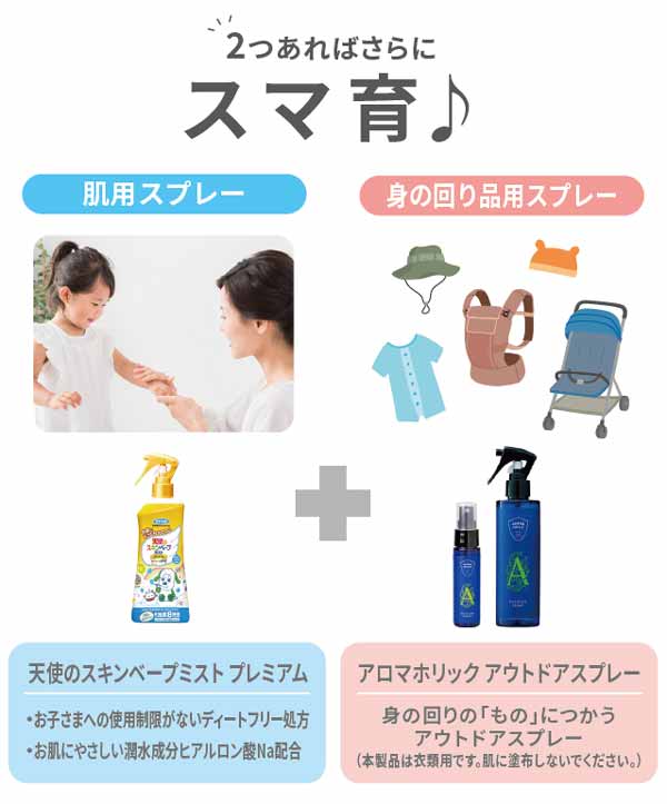 ・植物オイルと水だけ 植物オイルと水だけの100%ナチュラルな虫よけスプレー。 農業や食品工場、飲食店でも実用されている植物オイルを採用しております。 一般的に虫よけスプレーに用いられることの多いアルコール・ディート・合成香料・合成着色料・化学物質・動物性原料フリーなので小さなお子様にも安心です。 ・汗などの消臭/抗菌効果 虫よけ効果と香りだけでは無く、消臭効果もあるので汗をかいた部分にシュッとひと吹き。 衣服や網戸へルームスプレーとしてもお使いいただけます。 ・アルコールフリーへのこだわり アルコールを使用すると揮発性が高くなり、効果が一時的になってしまいます。 アロマホリックはアルコールを使用しないことで高い効果と持続性を実現。