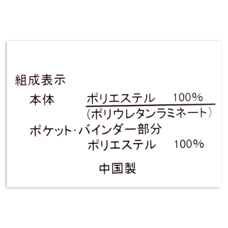 ●素材:[本体]ポリエステル100%(ポリウレタンラミネート) [ポケット・バインダー部分]ポリエステル100% ●サイズ(約・cm):総丈34.5 身幅21 前丈20.5 ポケット高さ8 ●洗濯表示:洗濯可