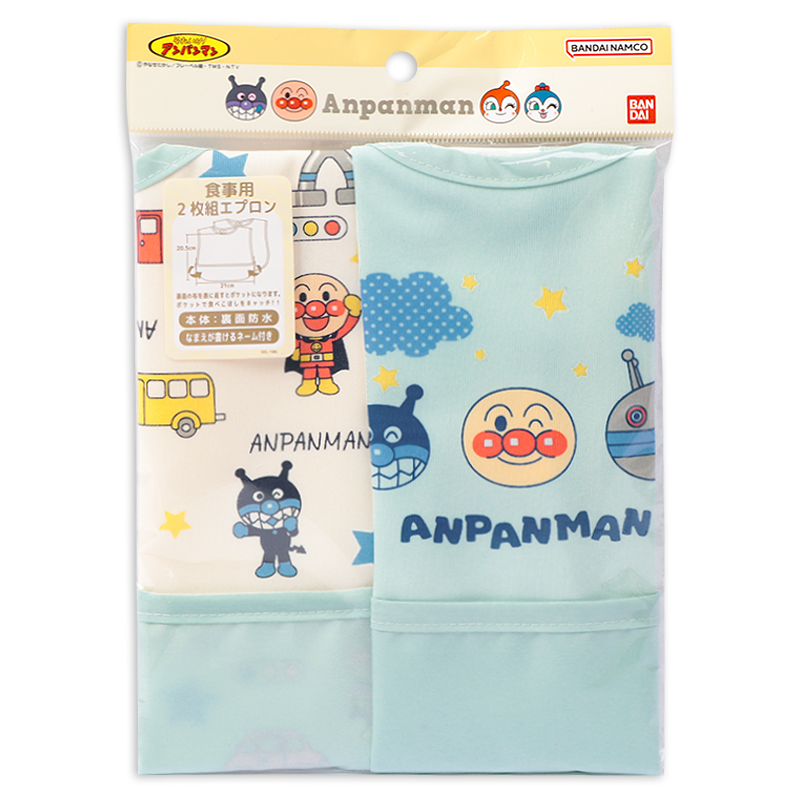 うしろの布を表に返すとポケットになり、食べこぼしをキャッチしてくれる2枚組エプロンです。 面ファスナーなので着脱もカンタン。 お名前ネーム付きです。 アンパンマンたちと一緒に楽しいお食事タイムを過ごしましょう。 (C)やなせたかし/フレーベル館・TMS・NTV