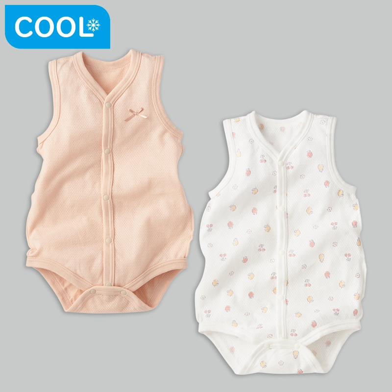 綿100%のメッシュ生地なので、汗をしっかり吸収し拡散、乾燥させ、 通気性がよく、汗をかいてもサラサラ快適に過ごせます。 前開きなので大きく開いてお着替えラクラク。 股ボタン仕様でおむつ替えも簡単です。 夏の暑い季節に最適で、洗い替えに便利な2枚組になっています。