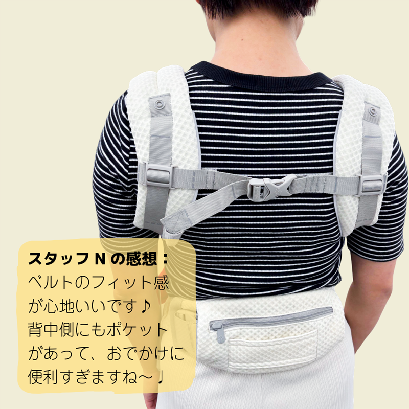 赤ちゃんとの抱っこの時間をもっと快適、ハッピーに オムニデラックス3つの特長 通気性、快適性、機能性 ポイント1 「全面メッシュ」で、通気性アップ 柔らかい肌ざわりと通気性を持つSoftFlex(TM)メッシュを全面に使用。抱っこ紐内の空気を素早く外に逃がし、抱っこで気になるムレを軽減します。 ポイント2 ママ・パパ・赤ちゃんにフィットしやすい人間工学に基づいた快適設計 赤ちゃんの背中がゆるく丸まり、ひざがおしりより上った自然な姿勢をキープします。  おしりよりひざが上がったM字姿勢 前向き抱きでも自然な姿勢をキープ 肩腰に荷重をバランスよく分散 ※写真はオムニブリーズのイメージです ポイント3 ママ・パパに嬉しい機能が充実 6カ所の収納付き ちょっとしたおでかけに便利 ウェストベルト横のポケットと取り外し可能なポーチのほか、腰サポート部などにも収納付き。 ウエスト横のポケットやポーチに。腰サポートにも完備。 他にもうれしい機能がたくさん! 1、強い日差しや風から赤ちゃんを守る日よけ&風よけフード付 使わない時は収納ポケットにしまっておける! 2、ダブルロック式バックル 赤ちゃんの手がふれても簡単に外れない安心設計。 3、ワンタッチで抱き方を変更 スライダーでシート幅を変更。抱き方を変えても快適な姿勢を保ちます。 4、2種類のまとめゴム ストラップをまとめるゴムが追加になり、よりすっきりとまとめられます。 5、マーク付きストラップ ママ・パパ共用で使う際の調節の目安に。 6、反射ロゴ・反射テープで暗い道でも安心。少しの光でも反射します。 シンプルデザインで、もっとスタイリッシュに ボタン部分が隠れることで、よりスタイリッシュなデザインになりました。 成長に合わせて長く使える 4通りの抱き方(対面抱き・前向き抱き・腰抱き・おんぶ) 0カ月(3.2kg)、5カ月(首すわり後から)から4歳頃まで ※イラストはオムニブリーズのイメージです 付け心地・抱き方など、実際に着けてから選んでほしい。 抱っこ紐はぜひアカチャンホンポで試着して選んでください♪ パパも試着! Ergobaby(エルゴベビー) Omni Deluxe(オムニデラックス) カラーバリエーション Cloud White クラウドホワイトはアカチャンホンポ限定カラー Onyx Black オニキスブラック Pearl Grey パールグレー Soft Olive ソフトオリーブ Graphite Grey グラファイトグレー Natural Beige ナチュラルベージュ Midnight Blue ミッドナイトブルー camel キャメル