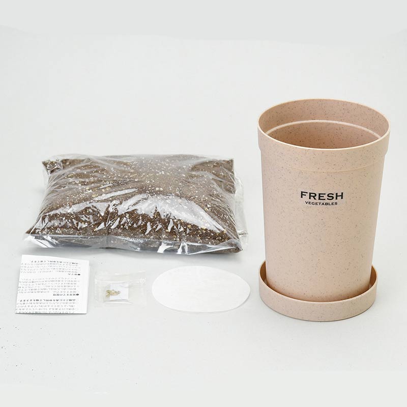 ●商品サイズ(約・cm):幅10.3×奥行10.3×高さ18.8 ●セット内容:ポット/鉢底シート/培養土/種/説明書