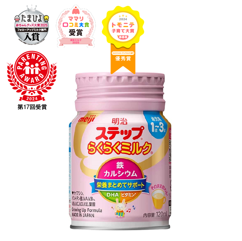 1歳からのフォローアップミルク。 1~3歳のお子さまに特に大切で、不足しがちな鉄・ビタミンC・ビタミンDを1日400ml飲用で必要な量の100%摂取できます。 調乳・温めなしで、哺乳瓶に移してそのまま飲める液体ミルク120ml。