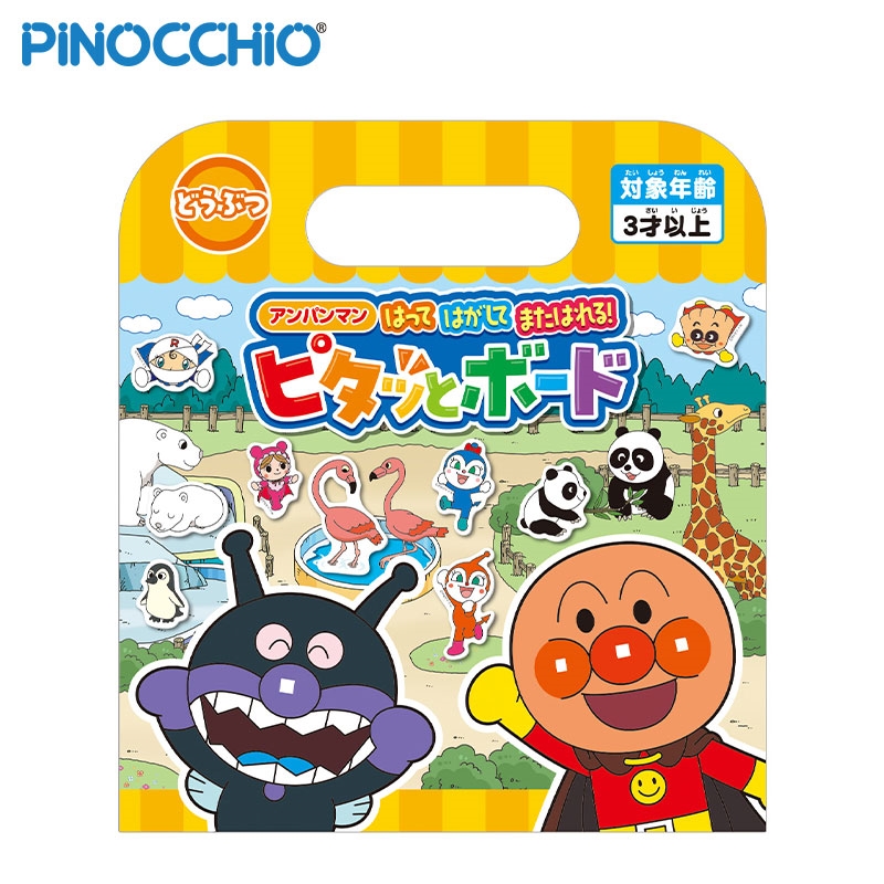 ボードは広げても折り畳んだままでも遊べます。 便利な持ち手付き。いろんな動物のシートや アンパンマンキャラクターのシートを貼って遊べます。