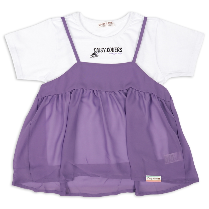 ○Tシャツ ●素材=ポリエステル65% 綿35% ●サイズ(約・cm)= [130]着丈40 身幅35 肩幅27 袖丈13 [140]着丈43.5 身幅37 肩幅31 袖丈14 [150]着丈47 身幅39 肩幅33 袖丈15 ○キャミソール ●素材=ポリエステル100% ●サイズ(約・cm)= [130]着丈42 身幅37 [140]着丈45.5 身幅39 [150]着丈49 身幅41 ●原産国=中国製 ●洗濯表示=洗濯可