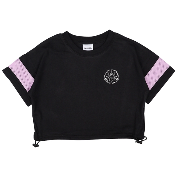 ●素材=本体 ポリエステル65% 綿35% 袖切替 ポリエステル100% ●サイズ(約・cm)= [130]着丈37.5 身幅41 肩幅46 袖丈10 [140]着丈41 身幅43 肩幅48 袖丈11 [150]着丈44.5 身幅45 肩幅50 袖丈12 ●原産国=中国製 ●洗濯表示=洗濯可
