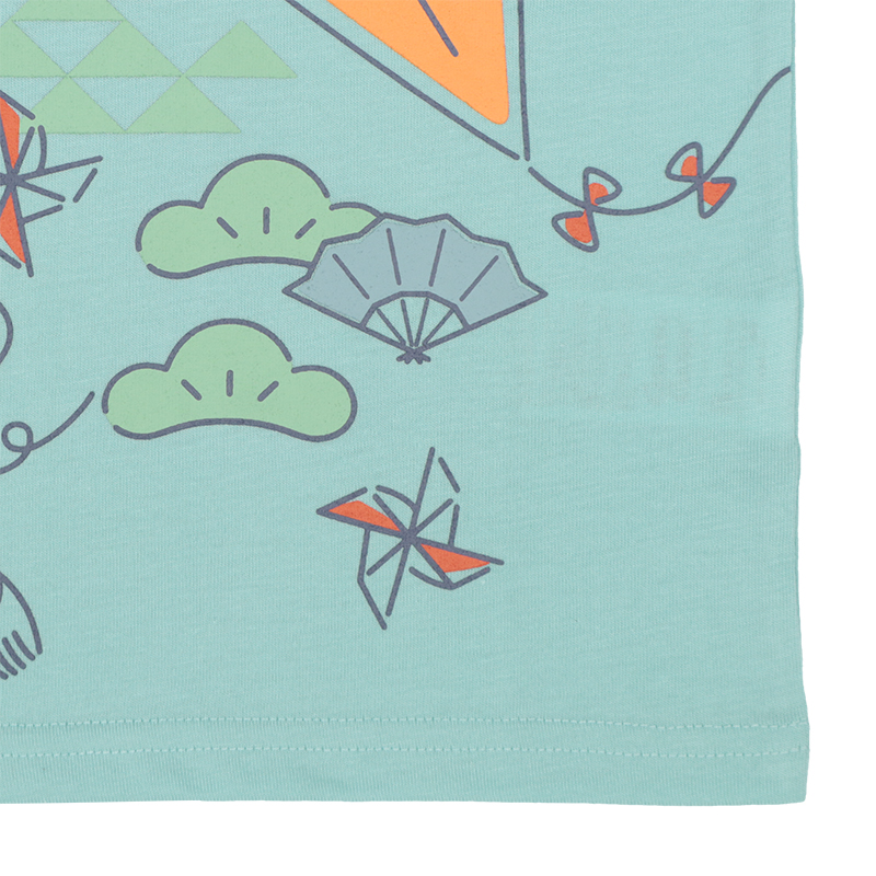 ●素材=ポリエステル65% 綿35% ●サイズ(約・cm)= [100]着丈40 身幅31 肩幅24 袖丈12 [110]着丈43 身幅33 肩幅26 袖丈13 [120]着丈46 身幅35 肩幅28 袖丈14 ●原産国=中国製 ●洗濯表示=洗濯可