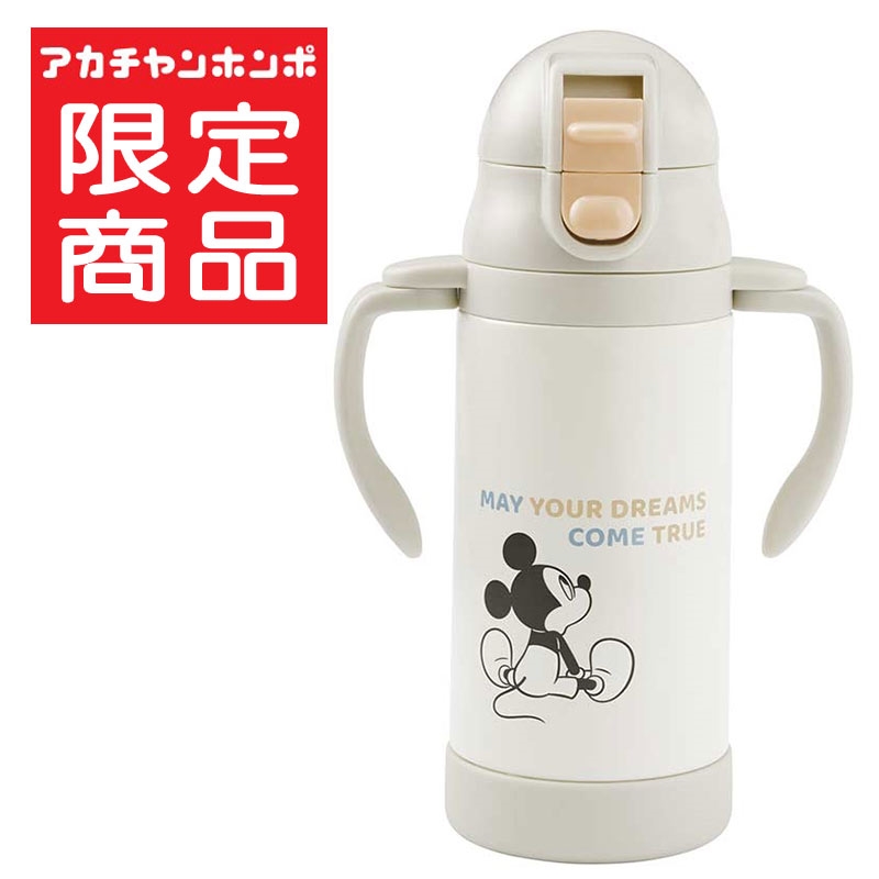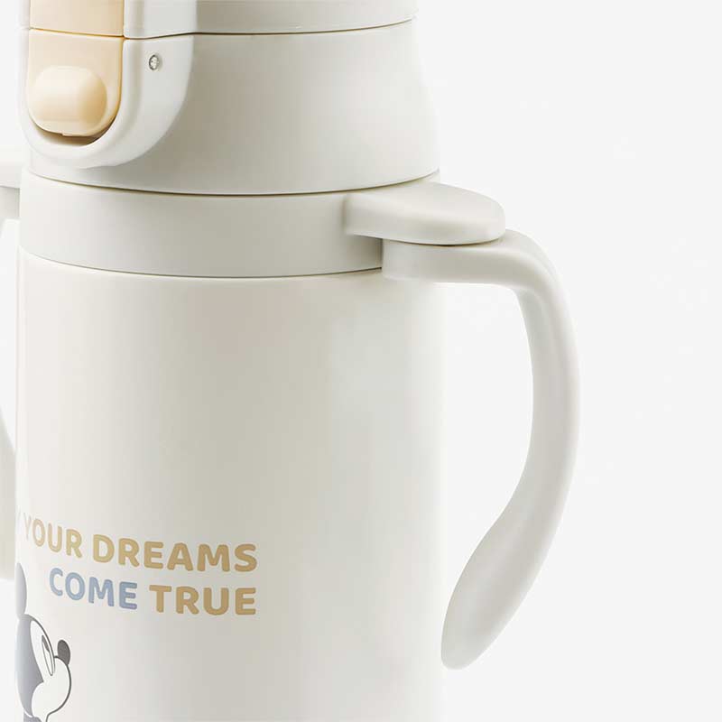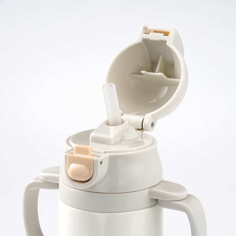 お子様が安心して飲めるやわらかいシリコーンストロー付き水筒。 両手でしっかり持てる両手ハンドル。 もれにくくロック付で安心。 保冷専用の真空二重構造。 折りたためるハンドルでコンパクトに持ち運び可能。 キャップロック設計で飲んでいる時にフタが戻らない。 片手でカンタン、ワンプッシュオープン。 すべりにくい底カバー。 (c)Disney