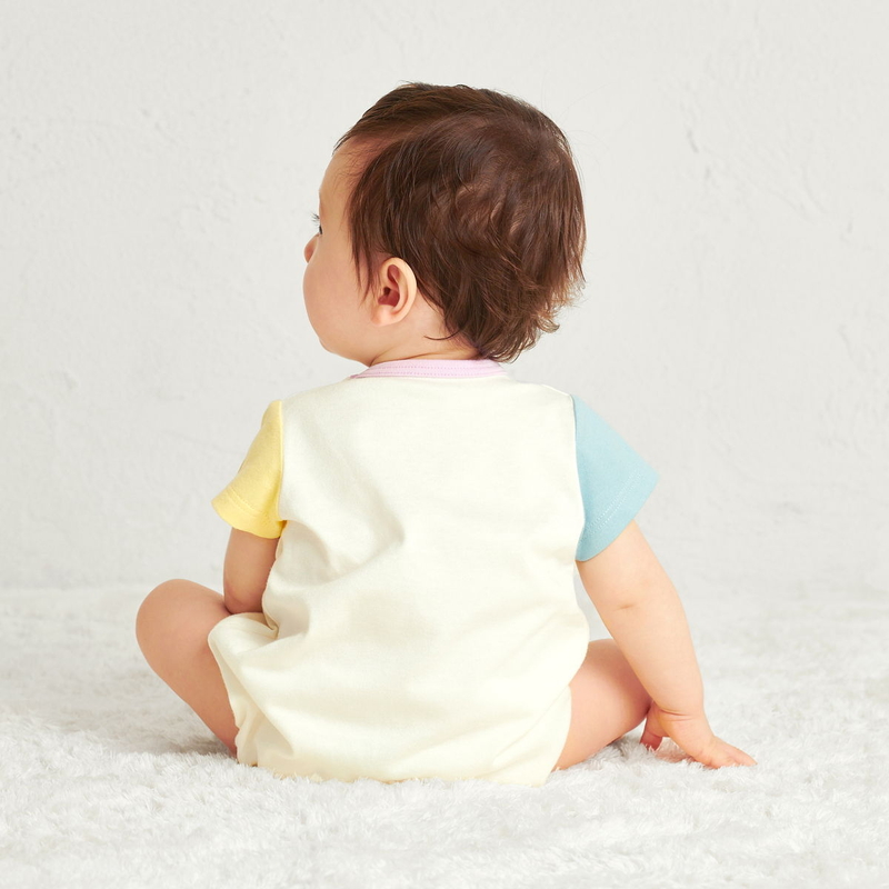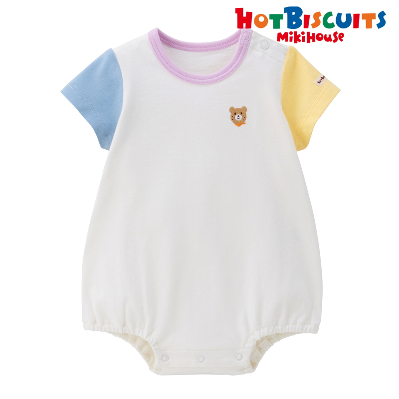 ミキハウス ホットビスケッツのワンポイント半袖ボディシャツ(ロンパース)。