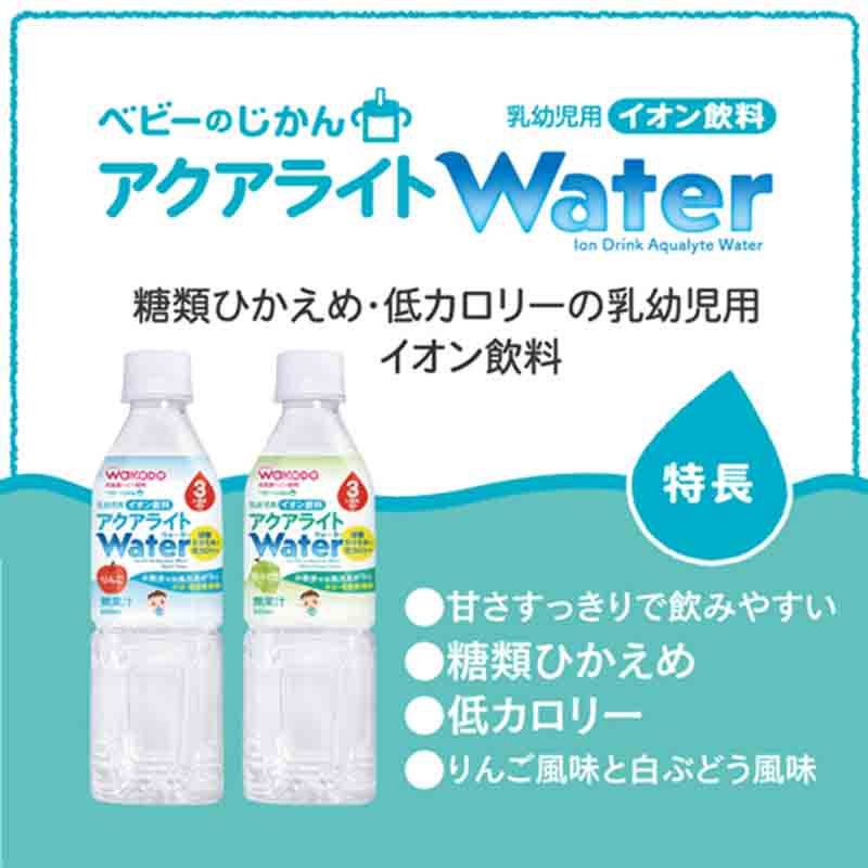 ●原材料:糖類(砂糖(国内製造)、ぶどう糖)、塩化ナトリウム/香料、クエン酸ナトリウム、クエン酸、塩化カリウム、グルコン酸カルシウム、塩化マグネシウム ●内容量:500ml×24本(ケース販売) ●栄養成分:100ml当たり エネルギー:11kcal、たんぱく質:0g、脂質:0g、炭水化物:2.7g、―糖類:2.4g、食塩相当量:0.12g、カリウム:20mg ●使用開始月齢:3ヵ月頃から