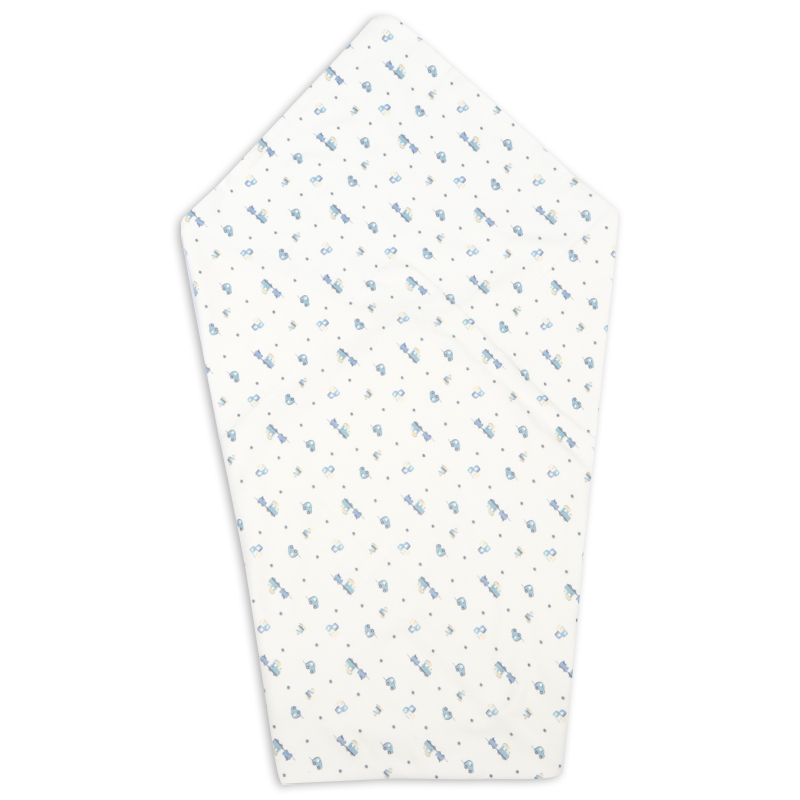 ご出産のお祝いにおすすめのギフトセットです。 やわらか素材のおくるみは、赤ちゃんを包んであげる事はもちろん、肌掛けとしてもお使いいただけます。 ご退院時のおくるみに、お昼寝に、色んなシーンにお使い頂ける便利なお品です。 おくるみの柄とおそろいのモチーフのリストラトルがセット。 リストラトルは赤ちゃんの手首や足首にはめてお使いいただけるので、 まだ上手に物を握れない低月齢の赤ちゃんにも遊んで頂けます。 中に鈴が入っており、振るとりんりん優しい音色がします。 タグが付いているので、さわったりつまんだり、指先を動かして遊べます。 おくるみとリストラトルをリボンで巻いて、箱に入れたパッケージでのお届けです。 ご出産お祝いのギフトとしてお渡し頂けます。 ※ラッピングはされてません。