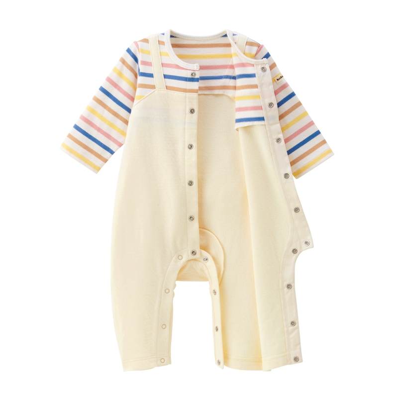 オーバーオールを着たようなデザインで、ユニセックスで着ていただけるやわらかなカバーオール。