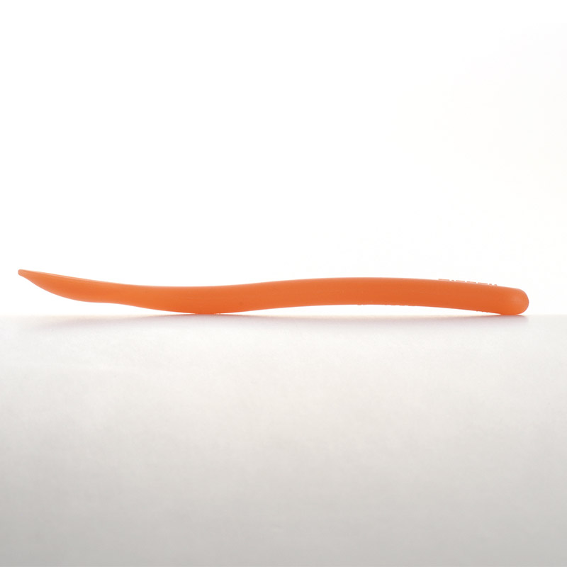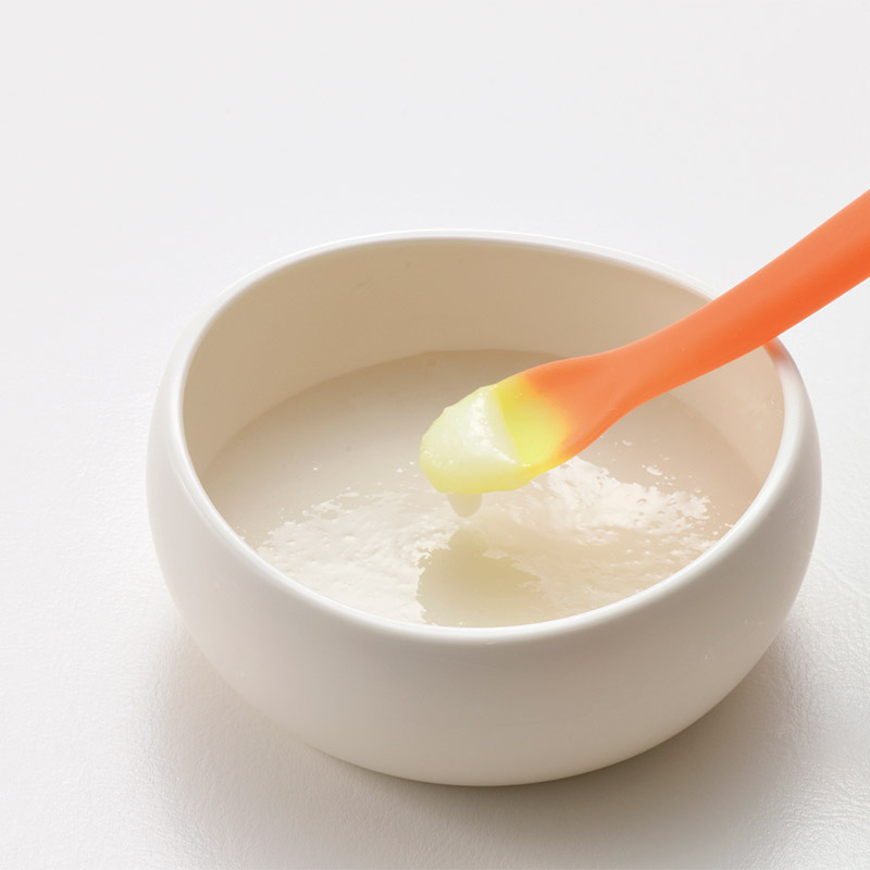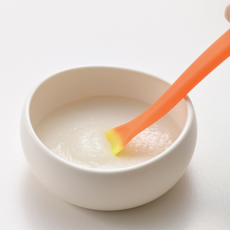お子様の口にやさしく、離乳食がすくいやすい示温スプーンです。