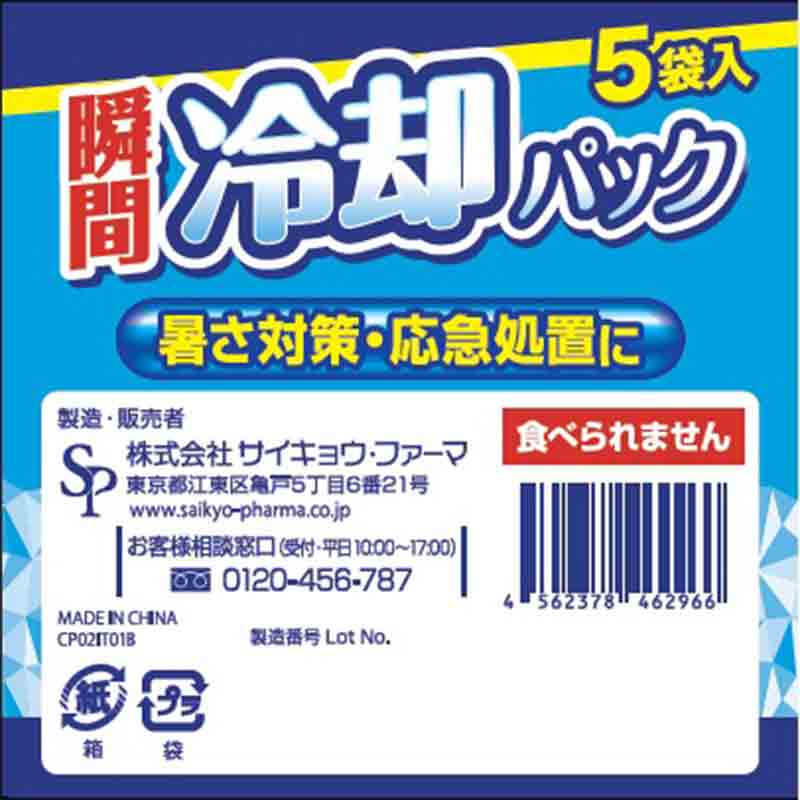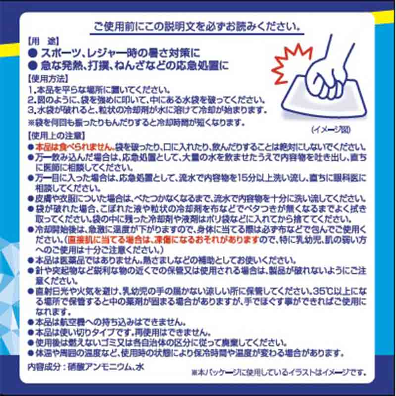 ●内容成分:硝酸アンモニウム、水 ●素材 箱:紙 袋:プラスチック ●内容量:5袋入