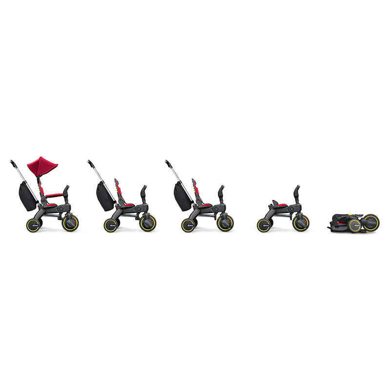 (1)舵きりモード:10~18ヵ月(リクライニング背もたれ・コントロールバー・足置き・ひじかけキャノピー) (2)手押しモード:18~24ヵ月(リクライニング背もたれ・コントロールバー・足置き) (3)トライクモード:24~30ヵ月(リクライニング背もたれ・コントロールバー・ペダル) (4)バイクモード:30~36ヵ月(低い背もたれ・ペダル) (5)トラベルモード:ボタン一つで折りたためるので旅行に便利 ●対象年齢:10ヵ月~ ●1年保証 ●付属の取扱説明書に従うこと