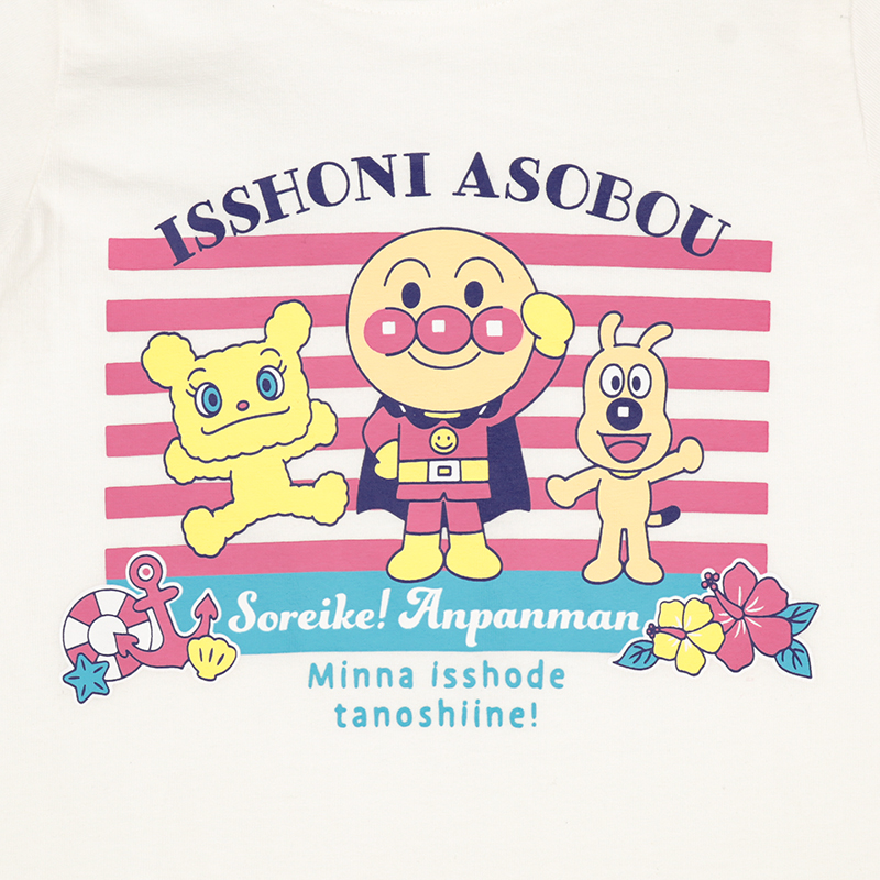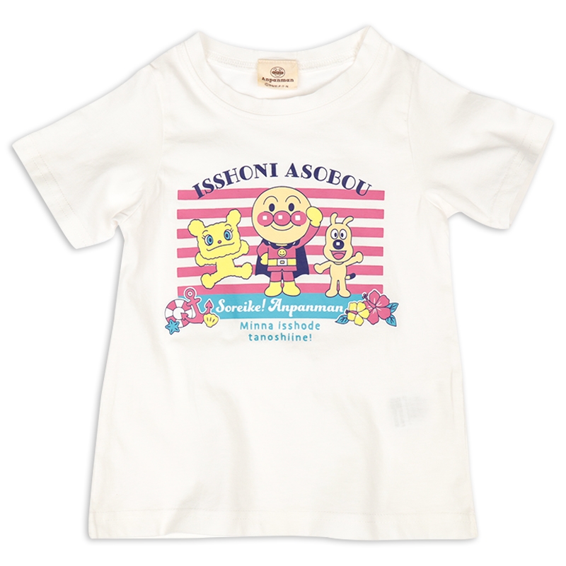 ●素材=綿100% ●サイズ(約・cm)= [80]着丈34 身幅26 肩幅20 袖丈11 [90]着丈37 身幅27 肩幅21 袖丈11.5 [95]着丈39 身幅28 肩幅22 袖丈12 [100]着丈40 身幅29 肩幅23 袖丈12.5 ●洗濯表示=洗濯可 ●原産国=バングラデシュ製 (c)やなせたかし/フレーベル館・TMS・NTV