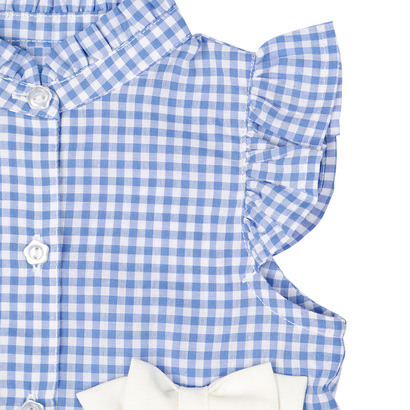 ●素材= [本体]ポリエステル65%綿35%[リボン]ポリエステル66%レーヨン28%ポリウレタン6% ●原産国=中国 ●サイズ(約・cm)= 80(身丈47・身幅29・袖丈3.5) 90(身丈50・身幅30・袖丈3.5) 95(身丈53・身幅31・袖丈3.5)
