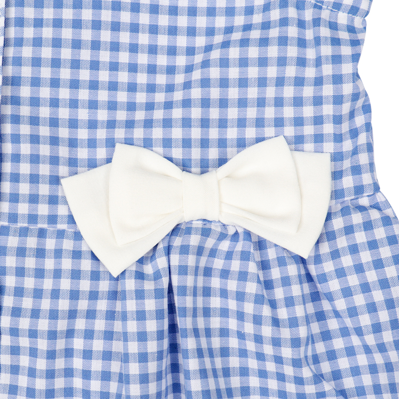 ●素材= [本体]ポリエステル65%綿35%[リボン]ポリエステル66%レーヨン28%ポリウレタン6% ●原産国=中国 ●サイズ(約・cm)= 100(身丈56・身幅32・袖丈3.5) 110(身丈61・身幅34・袖丈3.5) 120(身丈66・身幅36・袖丈3.5)