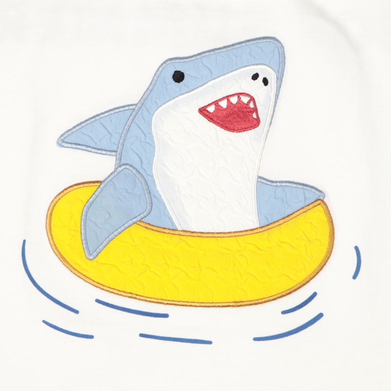 ●素材=本体:綿 100% リブ:綿 96% ポリウレタン 4% アップリケ:ポリエステル 100% ●サイズ(約・cm)= 100(身丈39・身幅35・袖丈7.5) 110(身丈42・身幅37・袖丈8) 120(身丈45・身幅39・袖丈8.5)